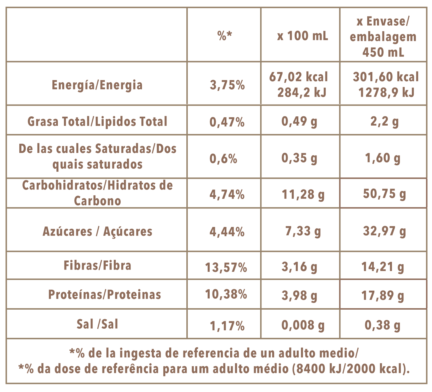 Leche desnatada rehidratada deslactosada, esencia de caramelo, inulina (fibra natural prebiótica), maltodextrina 6, edulcorantes (sorbitol E420, Stevia (E960 glucósidos de esteviol), proteína de leche aislada rehidratada y deslactosada ,lactasa, emulgente: (monoglicéridos de ácidos grasos E471), estabilizates (goma xantana E415, goma de celulosa E466).