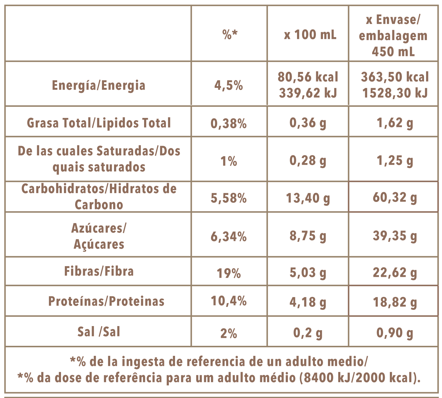 Leche desnatada rehidratada deslactosada, esencia de vainilla, inulina (fibra natural prebiótica), maltodextrina 6, edulcorantes (sorbitol E420, Stevia (E960 glucósidos de esteviol), proteína de leche aislada rehidratada y deslactosada, lactasa, emulgente: (monoglicéridos de ácidos grasos E471), estabilizates (goma xantana E415, goma de celulosa E466).